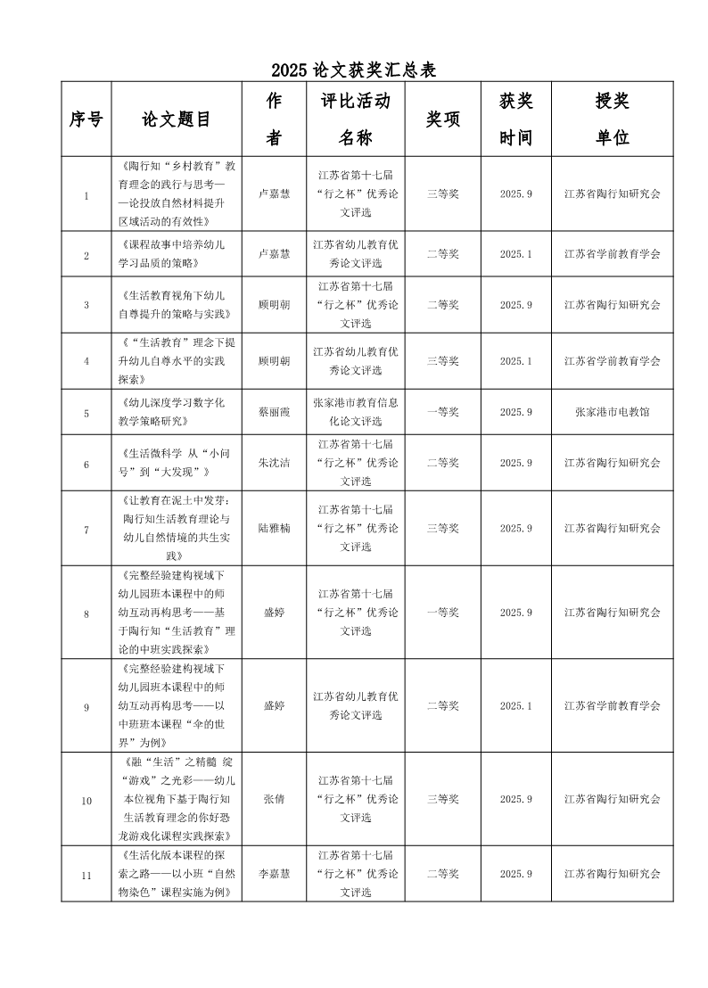 【论文获奖】2025论文获奖汇总表