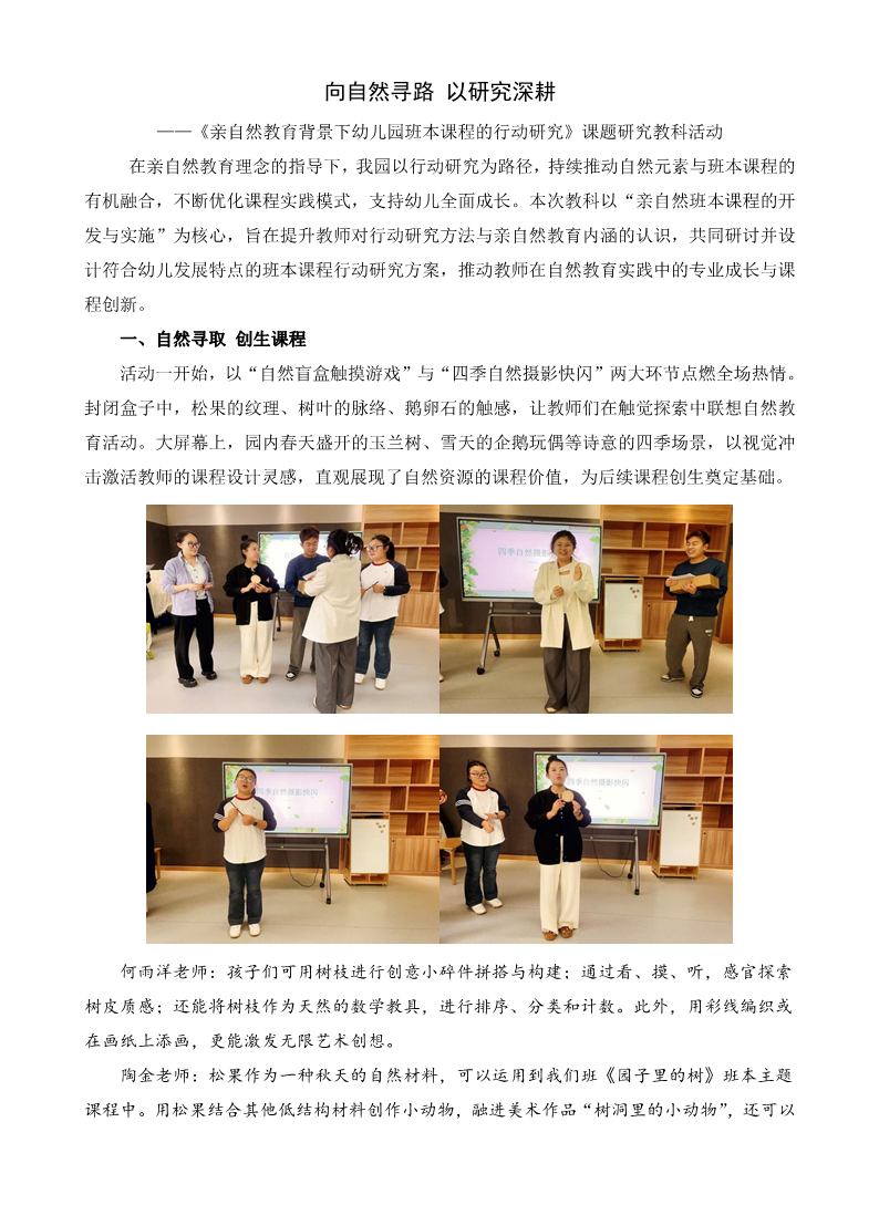 向自然寻路 以研究深耕——亲自然教育背景下幼儿园班本课程的行动研究教科研讨活动