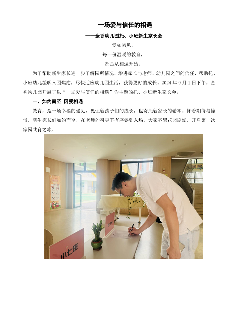 一场爱与信任的相遇——金香幼儿园托、小班新生家长会