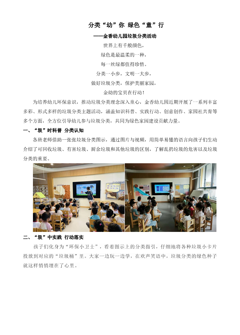 分类“幼”你 绿色“童”行——金香幼儿园垃圾分类活动新闻稿