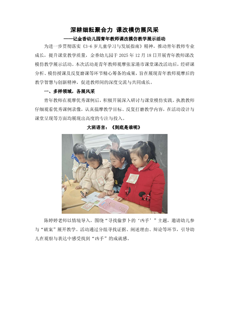 深耕细耘聚合力,课改模仿展风采——记金香幼儿园青年教师教学展示活动