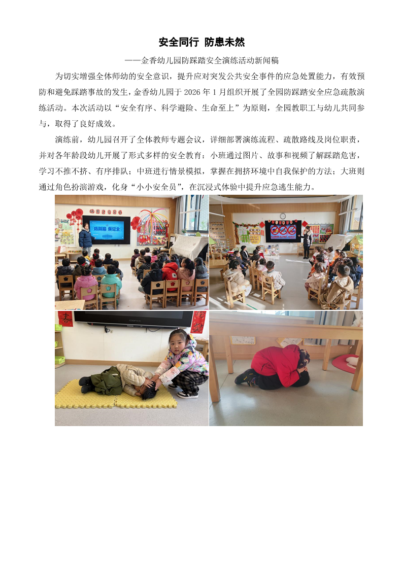 安全同行 防患未然——金香幼儿园防踩踏安全演练